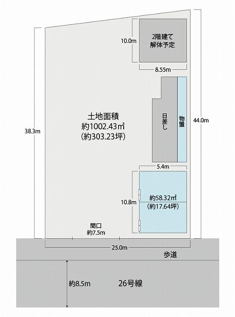 上水:本管100mm 引込20mm/下水:前面道路 配管無し